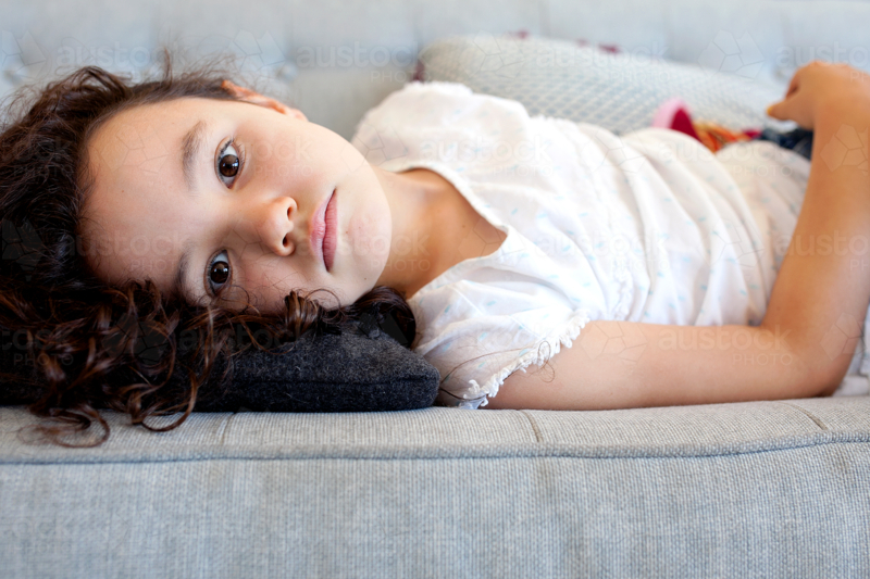 Young girl lying on sofa - Australian Stock Image
